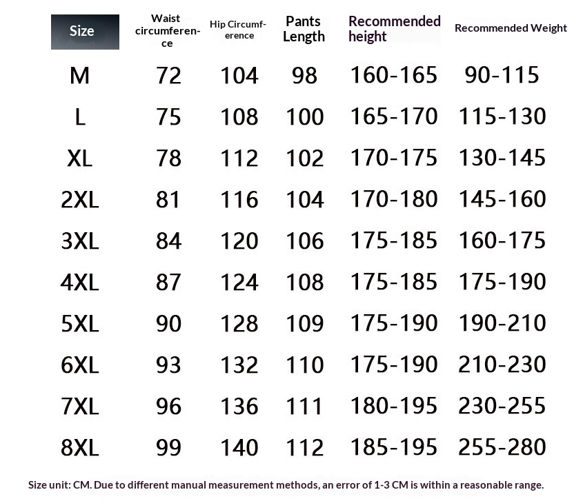 Sizes: S, M, L, XL, 2XL, 3XL, 4XL, 5XL, 6XL, 7XL, 8XL